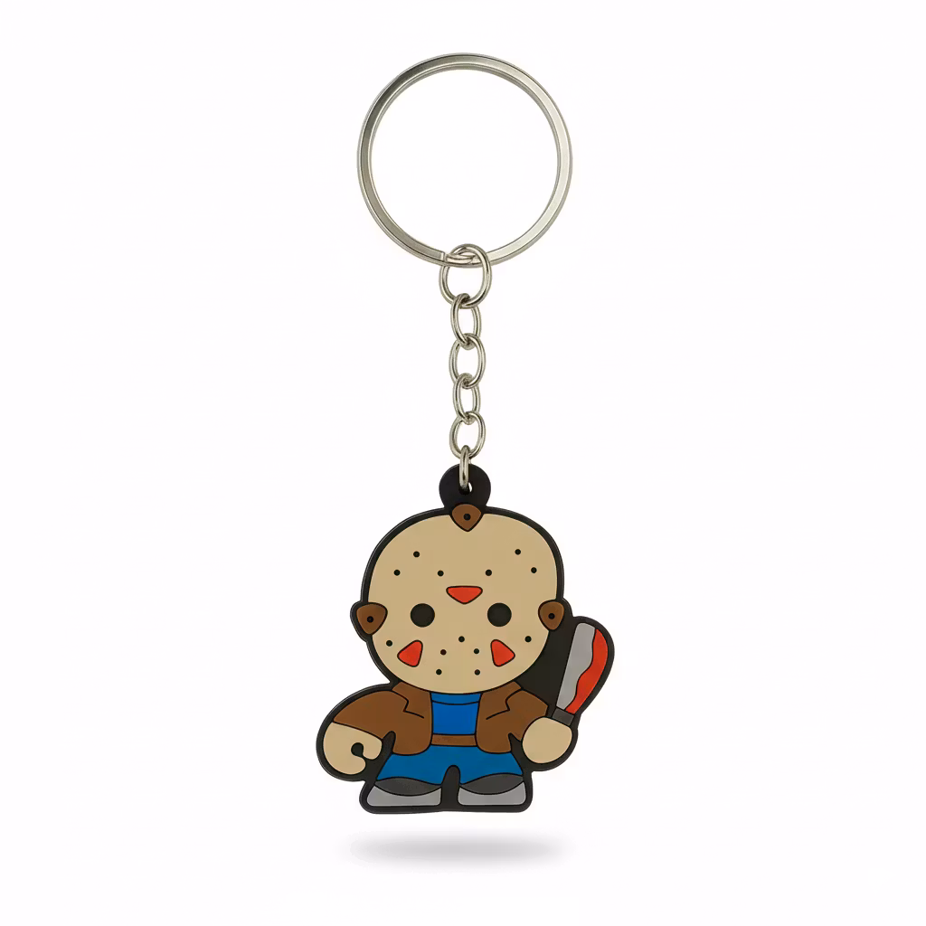 Nyckelring inspirerad av Jason Voorhees från Fredagen den 13e. Perfekt för fans av kultfilmer och samlarobjekt.